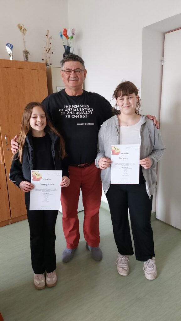 A Magyar Nyelv Múzeuma által szervezett Betűvetők – szépíró versenyen vett részt két diákunk: Balogh Jázmin Mia és Tóth Dorina 5.a osztályos tanulók. A folyóírással készített pályaművek elkészítéséért időt és energiát áldoztak, ami manapság már sajnos ritkaságszámba megy.