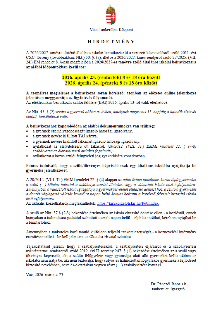 Az alábbi tájékoztató az online beiratkozásról ad információt